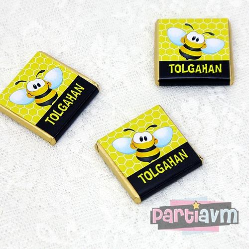 Arı Tema ve İsim Etiketli Hediyelik Kare Çikolata