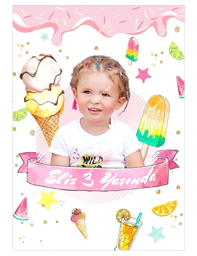 Kişiye özel Kız Çocuk Dondurma konseptli doğum günü süsleri, ürün çeşitleri, uygun fiyat ve kampanyalar