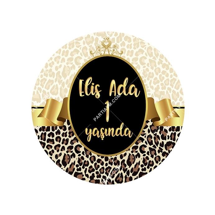 Leopar Desenli Doğum Günü Yuvarlak Etiket 7.5 cm 10 Adet