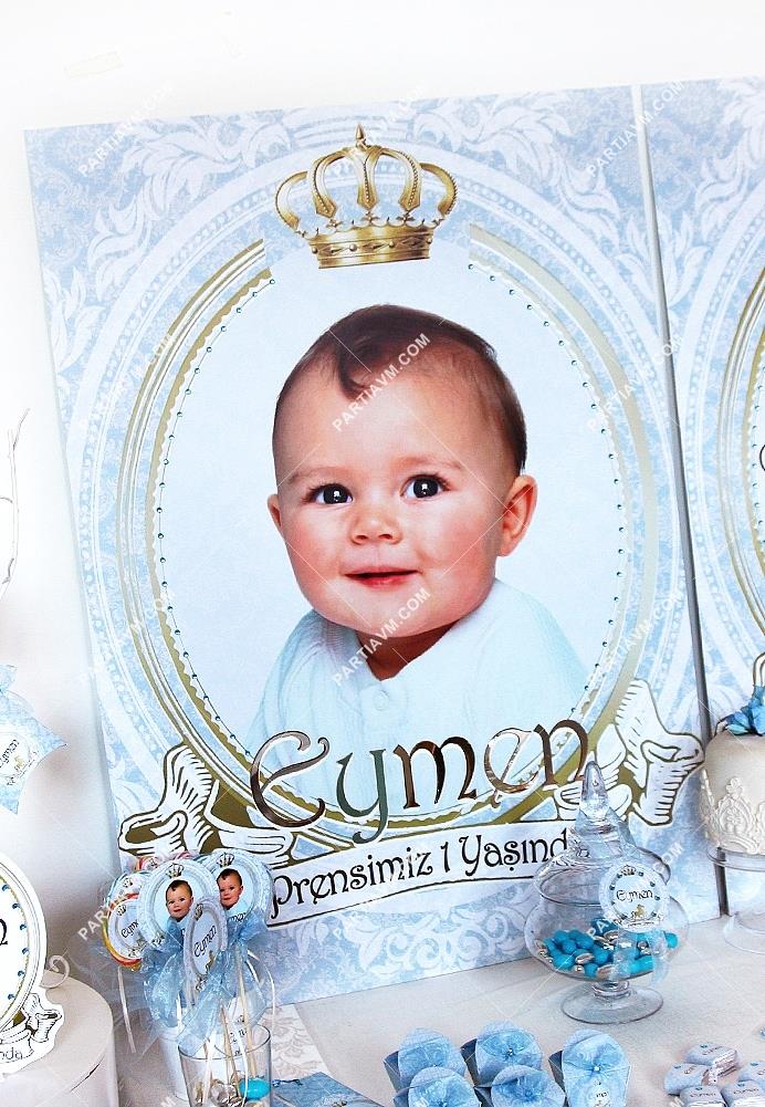 Lüks Prens Doğum Günü Süsleri 70x100 cm Katlanmaz Pano Afiş Büyük Boy Resimli Sarı Ayna İsimli