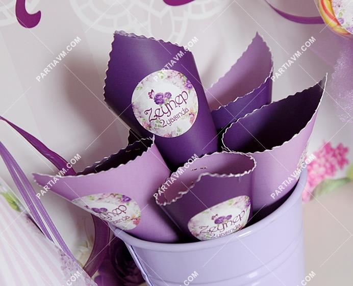 Mor Düşler Doğum Günü Küçük Çerezlik Külahlar Etiketli 10 Adet