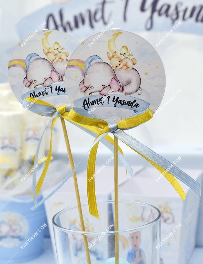 Uykucu Fil Doğum Günü Kürdan Süs Seti Büyük Boy 10 Adet