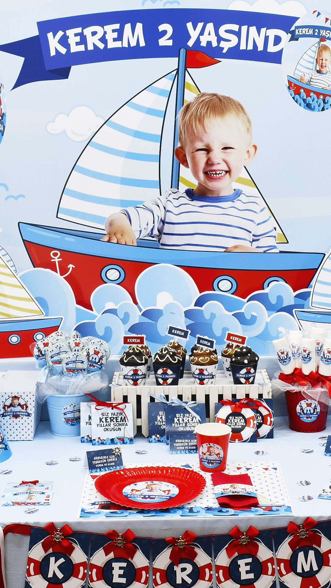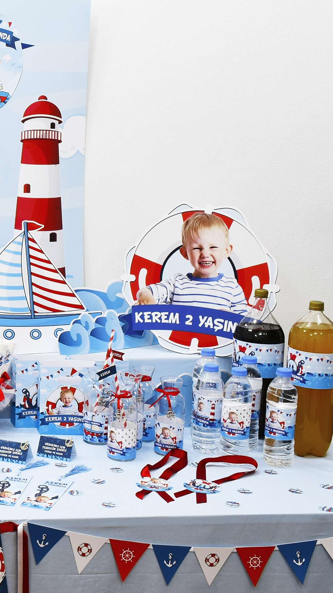 çocuğunuzun ismi ve fotoğrafı ile düzenleterek kendi butik denizci doğum günü