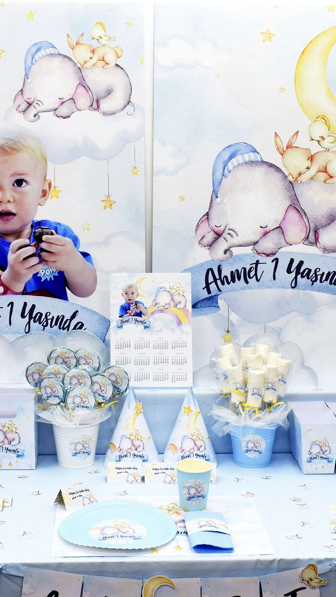 Doğum günü temamıza bulutların üzerinde uykucu fil ve arkadaşları eşik ediyor. 1 - 3 yaş doğum günü kutlamalarınız için şirin bir alternatif.